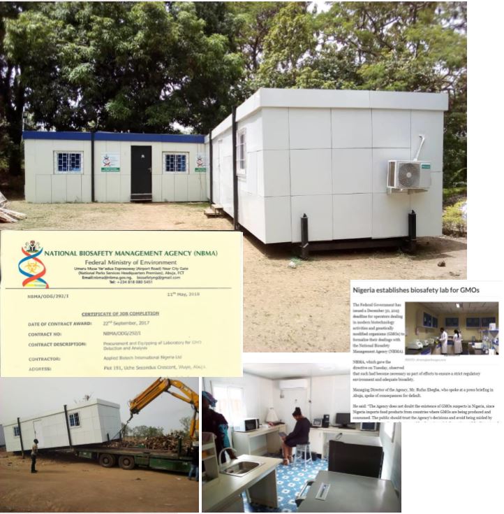 BIOTECH MOBILE LABS BUILT AND EQUIPPED FOR NATIONAL BIOSAFETY MANAGEMENT AGENCY (NBMA), AIRPORT ROAD, LUGBE; FOR DETECTION OF GENETICALLY MODIFIED ORGANISMS. Capacity – automated extraction of DNA / RNA, PCR, electrophoresis, GMO detection