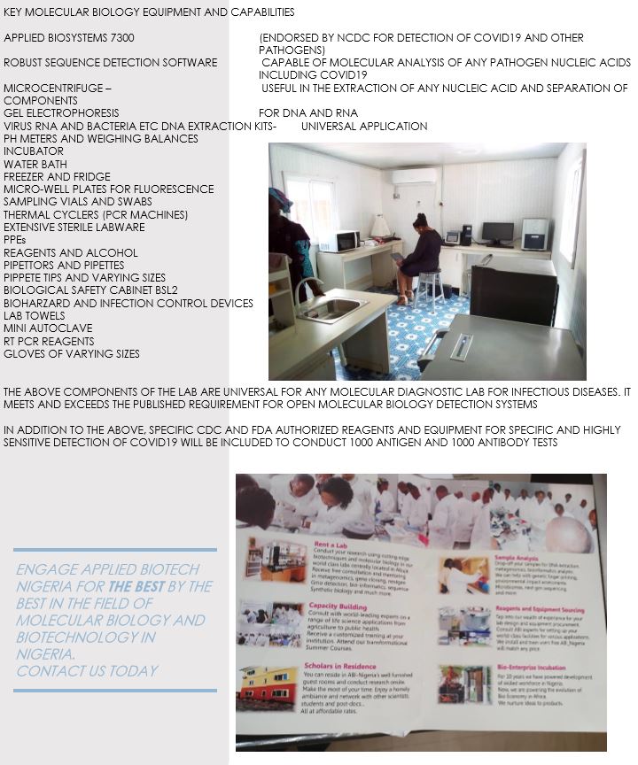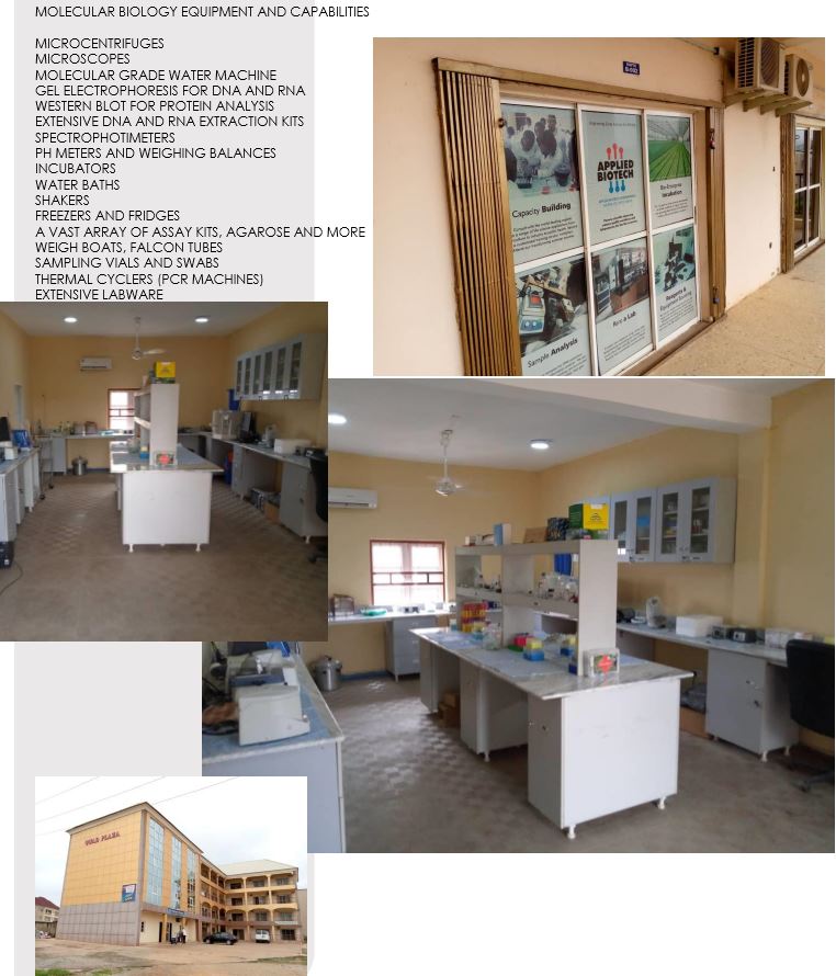 THIS IS A MULTI-PURPOSE MOLECULAR BIO LABORATORY DESIGNED, BUILT OWNED AND OPERATED BY APPLIED BIOTECH NIGERIA IN WUYE NIGERIA
