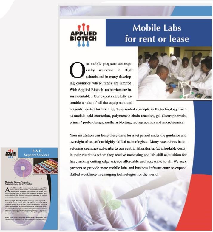 Proposed lab has the capacity to carry out RT-PCR of any pathogen – viruses like flu, hanta and lassa, bacteria like typhoid and other pathogens. It comes with a powerful sequence detection software and easy to interpret algorithms for results and reports